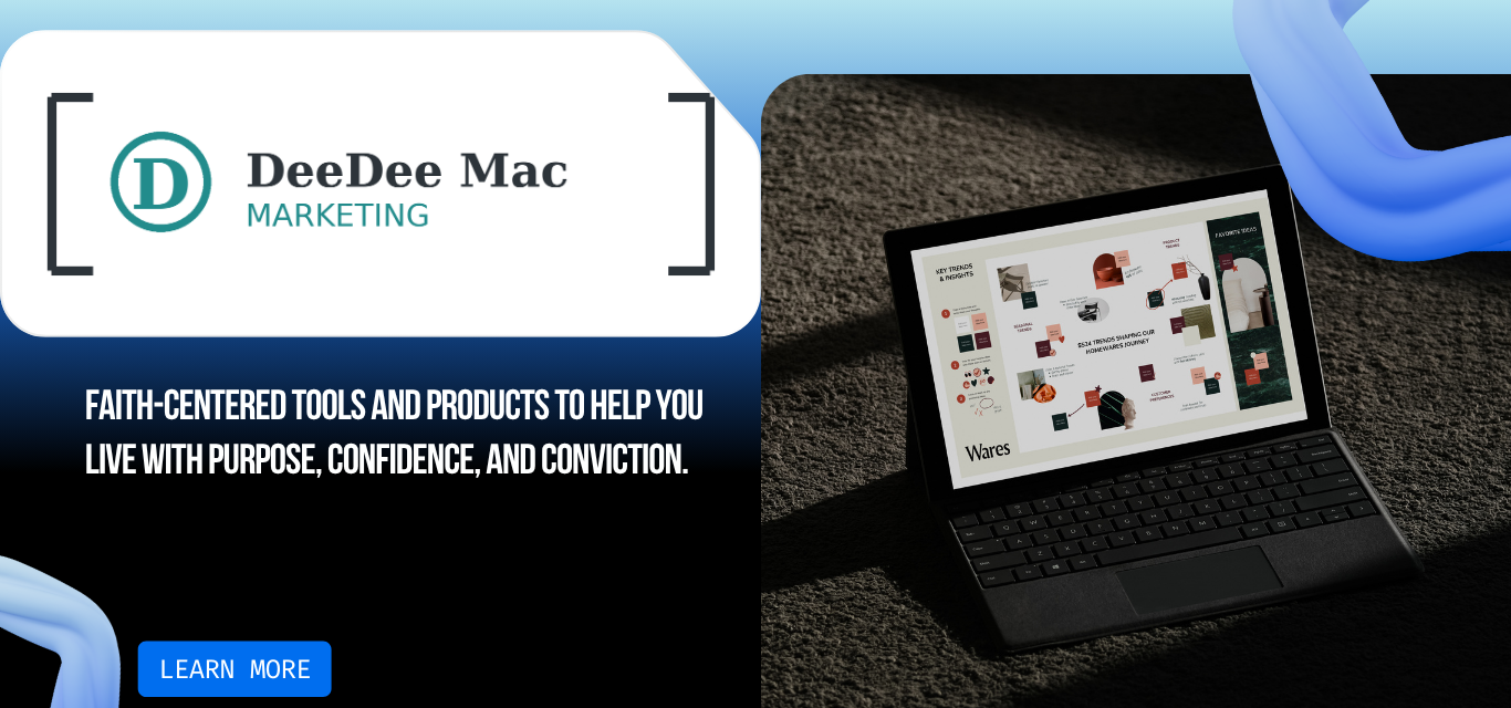 DeeDee Mac Marketing exists to equip men and women with resources, products, and inspiration that strengthen their faith, encourage personal growth, and help them walk confidently in the life God has called them to live.